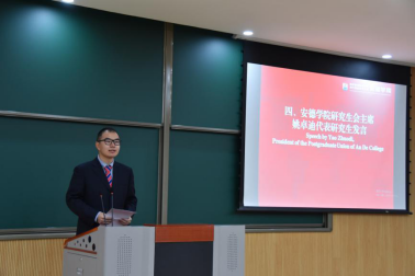首届研究生会主席姚卓迪代表研究生会干部发言。他表示作为研究生会干部感到责任重大,使命光荣,快猫短视频