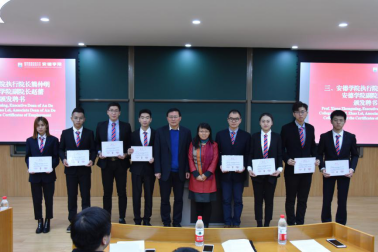 执行院长熊仲明,党支部书记、副院长刘言正,副院长赵蕾,行政办主任郑涛,学工办主任、团总支书记孙灵通,2018级本科生辅导员张嘉雯,快猫短视频