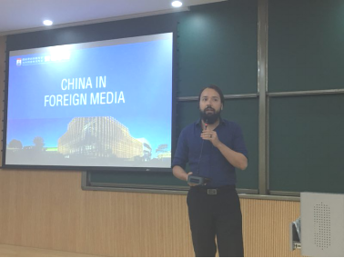 随后,外籍教师Rob代表评委进行点评,他对各组选手的表现表示惊讶,惊讶于大家对国外媒体材料收集的能力以及的较高的展示水平,他希望本项活动可以持久办下去,因为中国一直在高速发展之中。