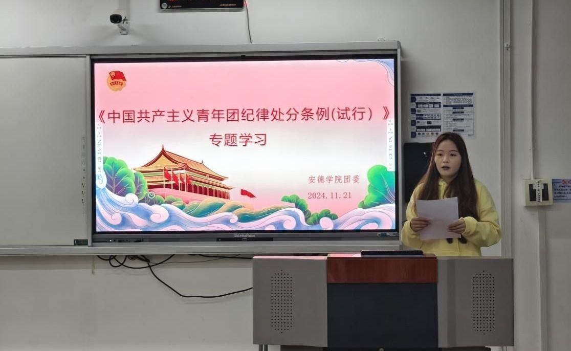 团委于11月21日开展《中国共产主义青年团纪律处分条例(试行)》专题学习,并组织各团支部于11月17日至11月22日开展学习。