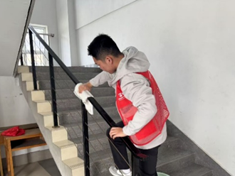 志愿者投身“净舍焕新”行动,对宿舍走廊、消防设施、楼梯扶手等公共区域展开深度清洁,完成多栋宿舍楼的清扫、消毒与杂物规整。活动不仅让环境焕然一新,更以劳动教育强化学生责任意识。“弯腰擦净每一块瓷砖,是对校园最朴实的告白!”志愿者们用汗水浇筑文明校园的基石。