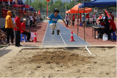 助跑区里,他加速冲刺,步伐如鼓点骤密。临近跳板奋力一跃,身姿舒展若鹰击长空。落地时沙坑陷下深痕,那是挑战极限的勋章,每一跃都跃向更远的渴望与梦想。