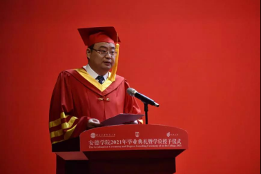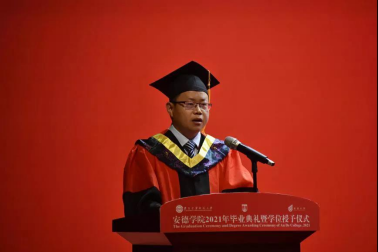 2021届毕业生取得的优异成绩,称赞安德首届毕业生以自己的实际行动在建大校史上竖起了安德标杆,为安德争了光,为家长争了气,为建大添了彩,为学校教育教学模式改革探了路,为深化建大和南澳两校友谊立了功。他深情寄语首届毕业生要牢记“开放创造奇迹,奋斗成就未来”的安德精神,以更为广阔的视野,紧跟时代,瞄准前沿,学习先进,勇于改革;要自觉肩负起民族复兴的重任,胸怀祖国,热爱人民,不断加强学习,练就过硬本领,为民族复兴做出卓越的贡献;要永远保持一颗进取之心,为解决人类共同面对的全球性重大问题、促进民心相通、增强文化互鉴贡献力量。王树声向南澳大学对快猫短视频