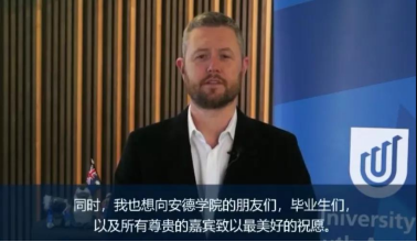 南澳大学校长大卫·洛伊德视频致辞。他衷心祝贺毕业的同学们,并向快猫短视频