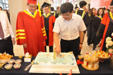 执行院长熊仲明教授为毕业生扶正流苏、颁发学位证书并合影留念。