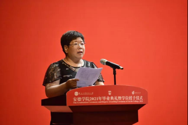 副院长赵蕾教授宣读接受“2+2和1+1+1”联合培养,被授予双学位的学生名单。校学位评定委员会主席、校长王树声教授,副校长姚尧教授、快猫短视频