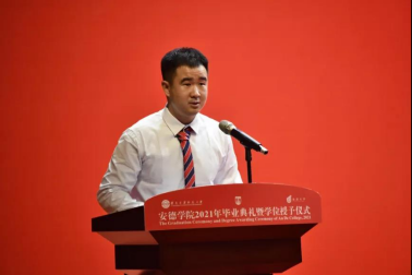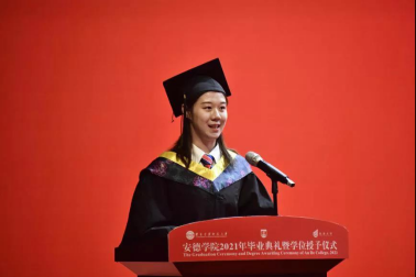 学生代表、硕士研究生国家奖学金获得者陈帜同学,2021届“2+2”联合培养项目本科毕业生代表周肖言同学,将赴伦敦大学学院深造的本科毕业生代表李子昂同学分别现场和视频发言。