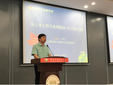 的求学经历讲起,后又考研至同济大学工程结构所,再到参加工作以及后来自己创建公司,在公司发展的鼎盛时期,他又选择了收购加拿大温哥华兰里国际飞行学院。张宁教授用亲身经历告诉同学们,只有脚踏实地,以严谨的工作态度,才能冲破艰难险阻,坚韧面对一切,然后方得成功。