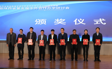 开幕式上宣布了陕西省高等教育学会中外合作办学分会《关于表彰2020年度陕西省中外合作办学优秀项目(机构)和优秀专家的通知》(陕西高中外分会【2020】11号)。为表彰先进,树立典型,夯实内涵建设,扩大辐射效应,经分会专家委员会对我省各学校中外合作办学项目(机构)的评估,对党建工作完善、招生数量饱满、内涵建设扎实、辐射效应比较明显、平台作用发挥比较充分的项目(机构)和优秀专家进行表彰。快猫短视频
