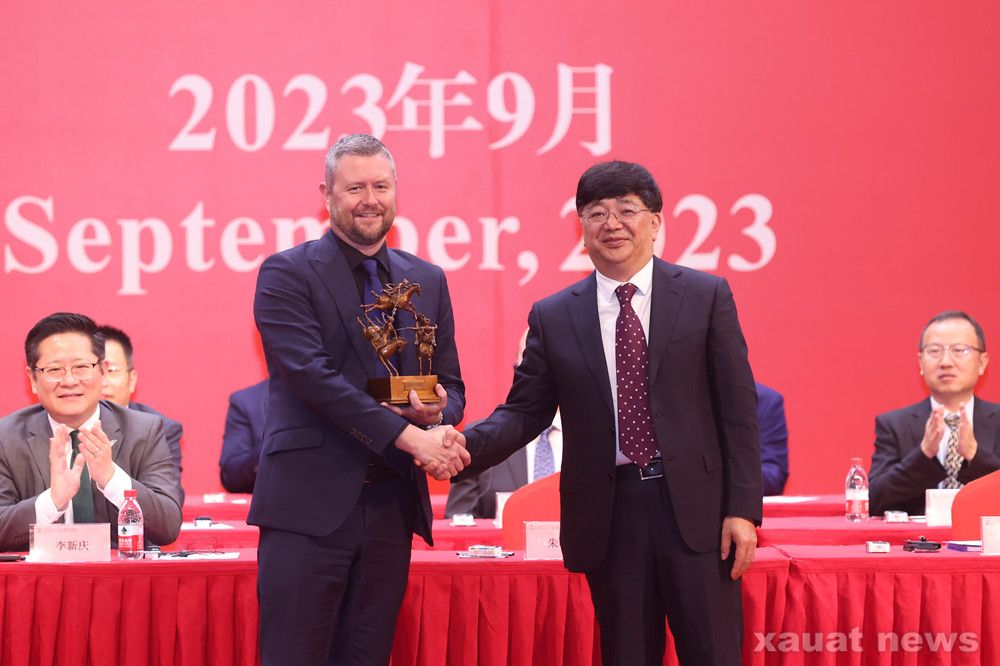 典礼在雄壮的国歌中拉开序幕。朱晓渭和David Lloyd代表两校互赠礼物。我校向南澳大学赠送了《丝路长安》铸铜雕塑,寓意两校合作友谊始于古城西安也并将历久弥新。