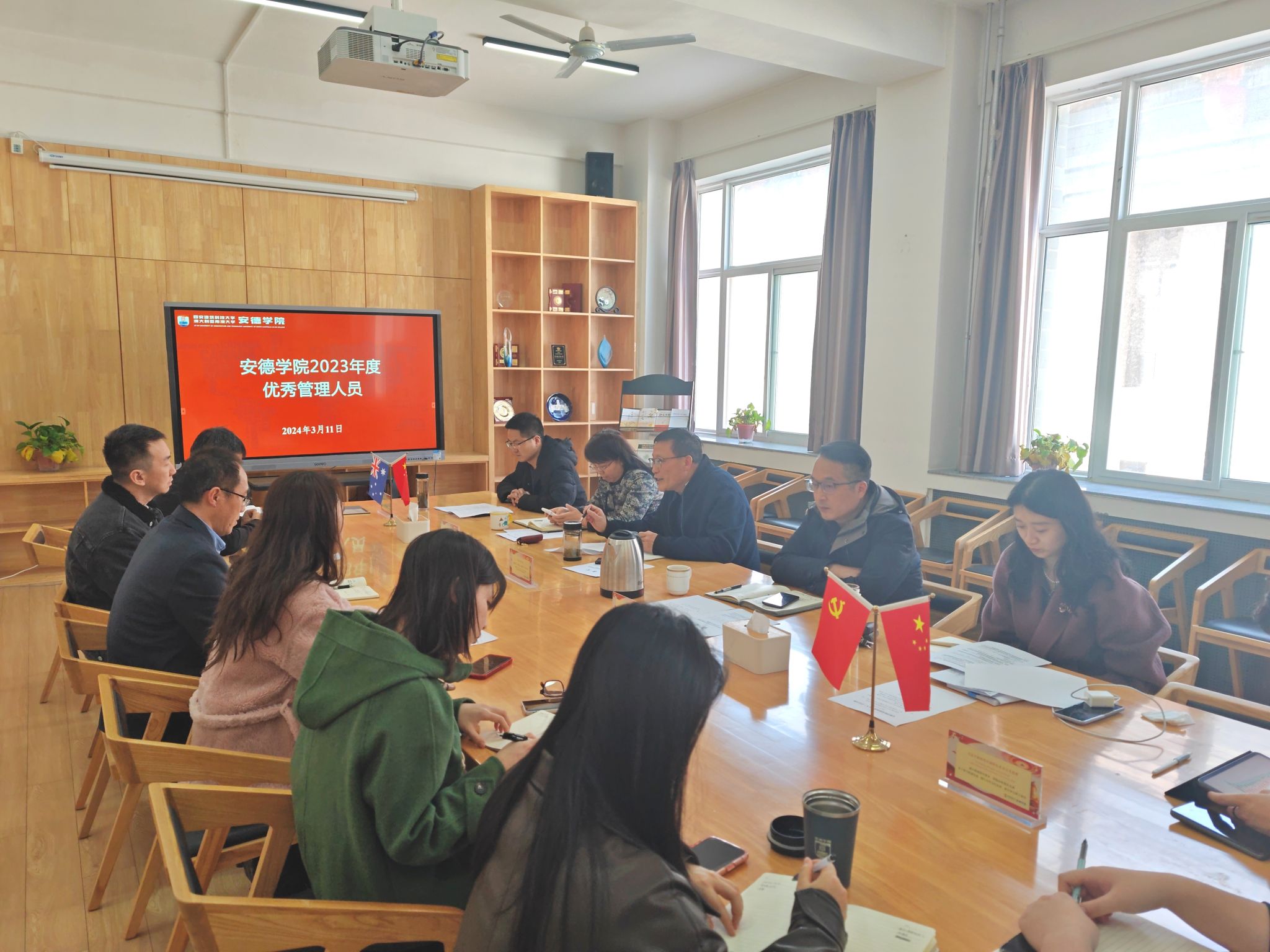 在草堂校区学院会议室召开2023年度优秀人员表彰大会。学院全体教职工参加,会议由副院长郑涛主持。