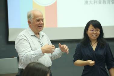 随后,澳大利亚教育管理集团澳方院长Bruce介绍了海外研修项目的具体要求,并和培训教师讨论了海外研修对提高教学水平的重要意义。会议间隙还与参会人员针对教学方面的问题进行了深入的探讨和交流。