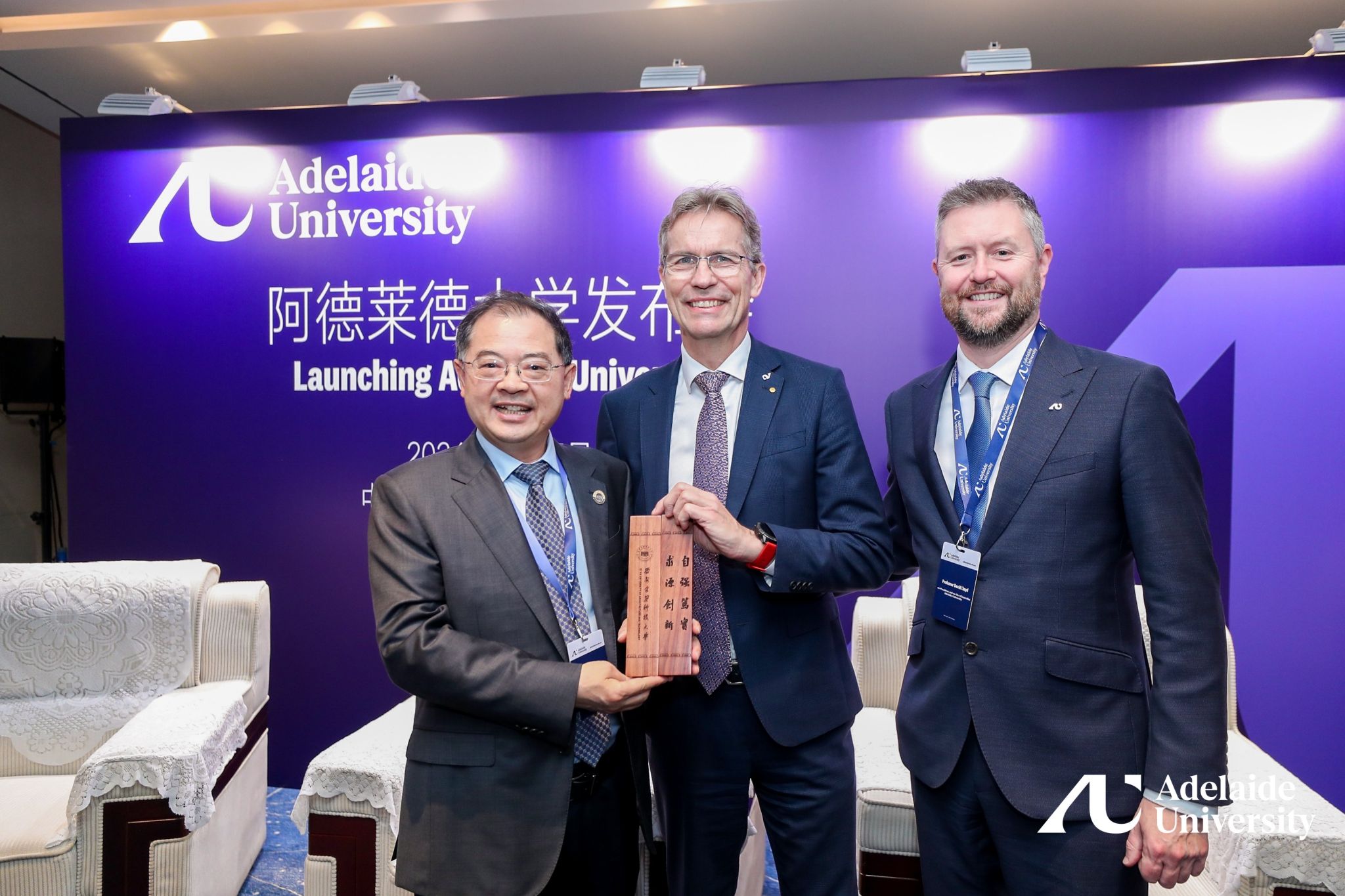 9月25日下午,校长赵祥模、副校长陈荣、快猫短视频 执行院长熊仲明、副院长郑涛一行应邀出席南澳大学与阿德莱德大学合并发布会“合璧·致远”。