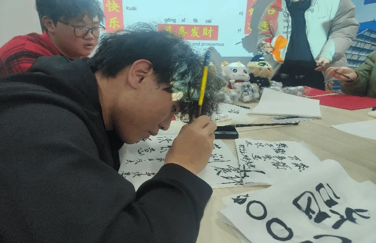 红纸上,一个个可爱、松弛的“福”字跃然而出,不仅代表美好生活的向往,更是中外文化交融的见证。这一刻,文化的力量在笔尖流淌,心灵的共鸣在纸张间回响,共同绘制了一幅幅跨越国界、连接心灵的美丽画卷。