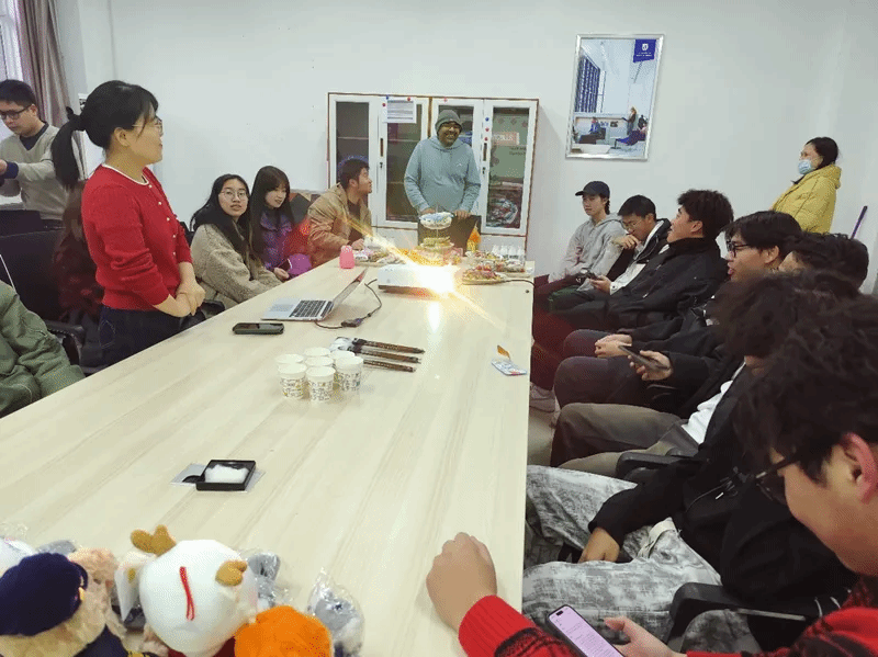 紧接着,外教Thaarish带着南非新年习俗分享闪亮登场,为这场活动增添了一抹独特的异域色彩。他深情讲述自己国家新年的由来与庆祝方式,还分享了那些充满地域特色的新年美食与娱乐活动,让在场的每一个人都仿佛置身于异国新年的欢乐氛围中,感受着不同文化的独特魅力。