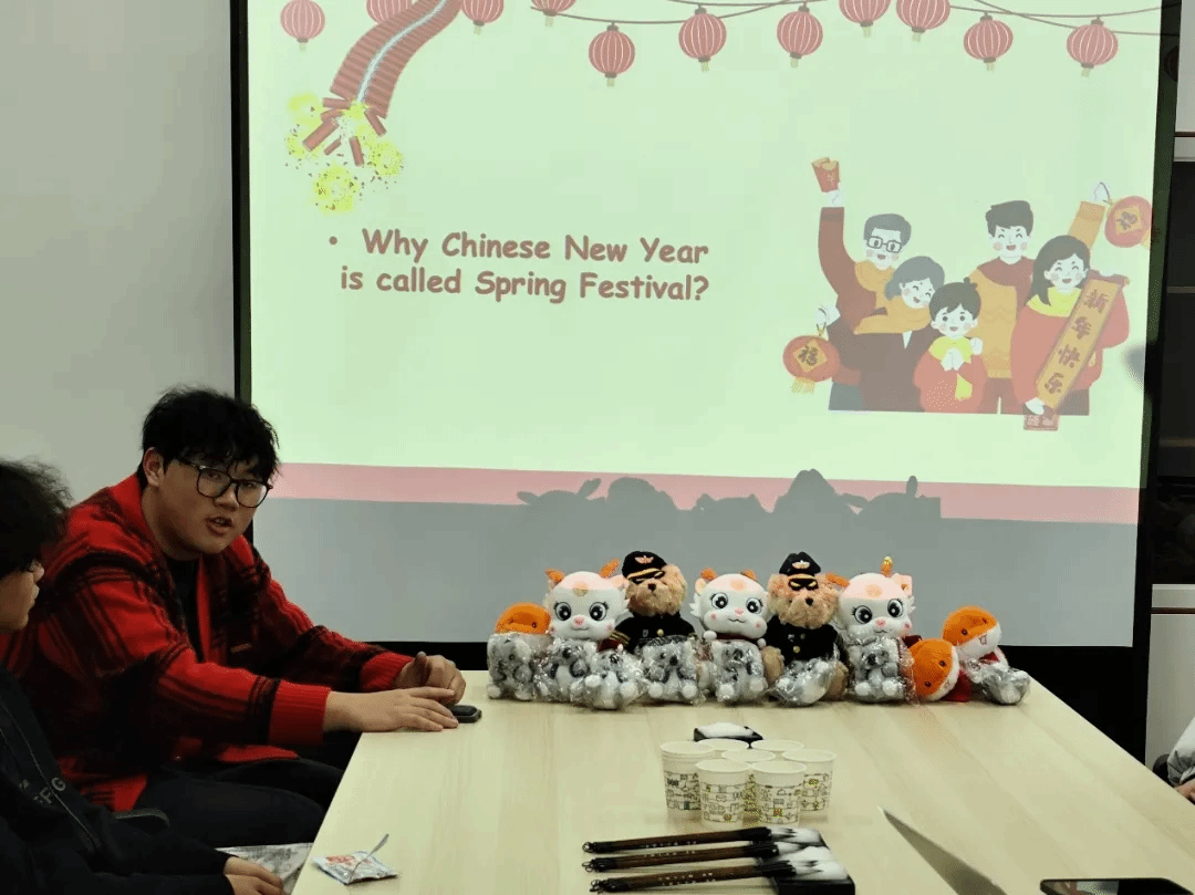 从古老历史典故的细腻描绘,到传统艺术的精妙演绎,每一个细节都仿佛在诉说着岁月的故事。而当话题聚焦到中国传统春节迎新时,现场更是沉浸在一片热烈而温馨的氛围之中。徐攀老师娓娓道来春节的起源、发展以及蕴含其中的深刻寓意,在场的各位老师和同学们都听得津津有味。