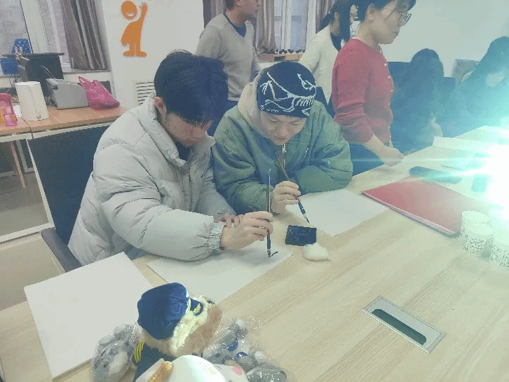 而活动的压轴大戏,莫过于毛笔书写“福”字环节。参与者们纷纷拿起毛笔,静心凝神,一笔一划间倾注了对新年的美好祈愿与对传统文化的深深敬仰。