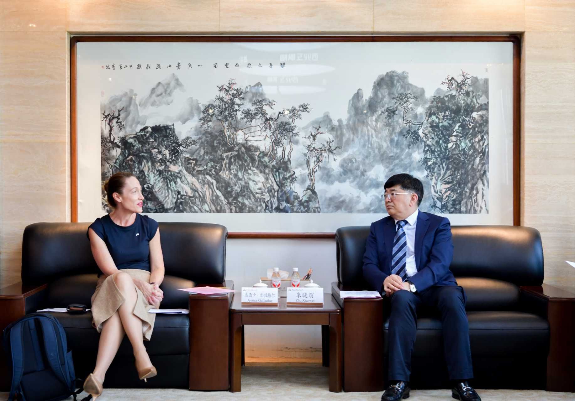作为两校合作的重要成果,在中外合作办学机制创新、人才培养等方面所取得的显著成效予以充分肯定。他指出,新阿德莱德大学的成立为两校合作开辟了更为广阔的前景,必将为双方带来更多的发展机遇。期望两校以此次交流为契机,进一步深化友谊,拓展在科研合作、师资建设、人才培养等领域的合作空间,共同为中外高等教育合作作出更大贡献。朱晓渭诚挚邀请Jessica Gallagher出席我校将于明年举办的办学130年暨并校70周年校庆活动,共同谋划合作新篇章。