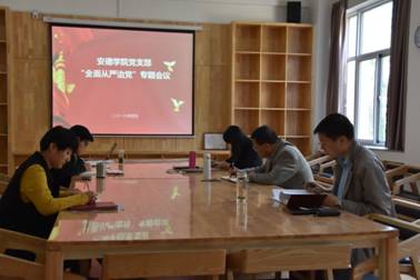 会议室召开“全面从严治党”专题会议。学院执行院长熊仲明及支部全体党员参加会议,会议由党支部书记、学院副院长刘言正主持。