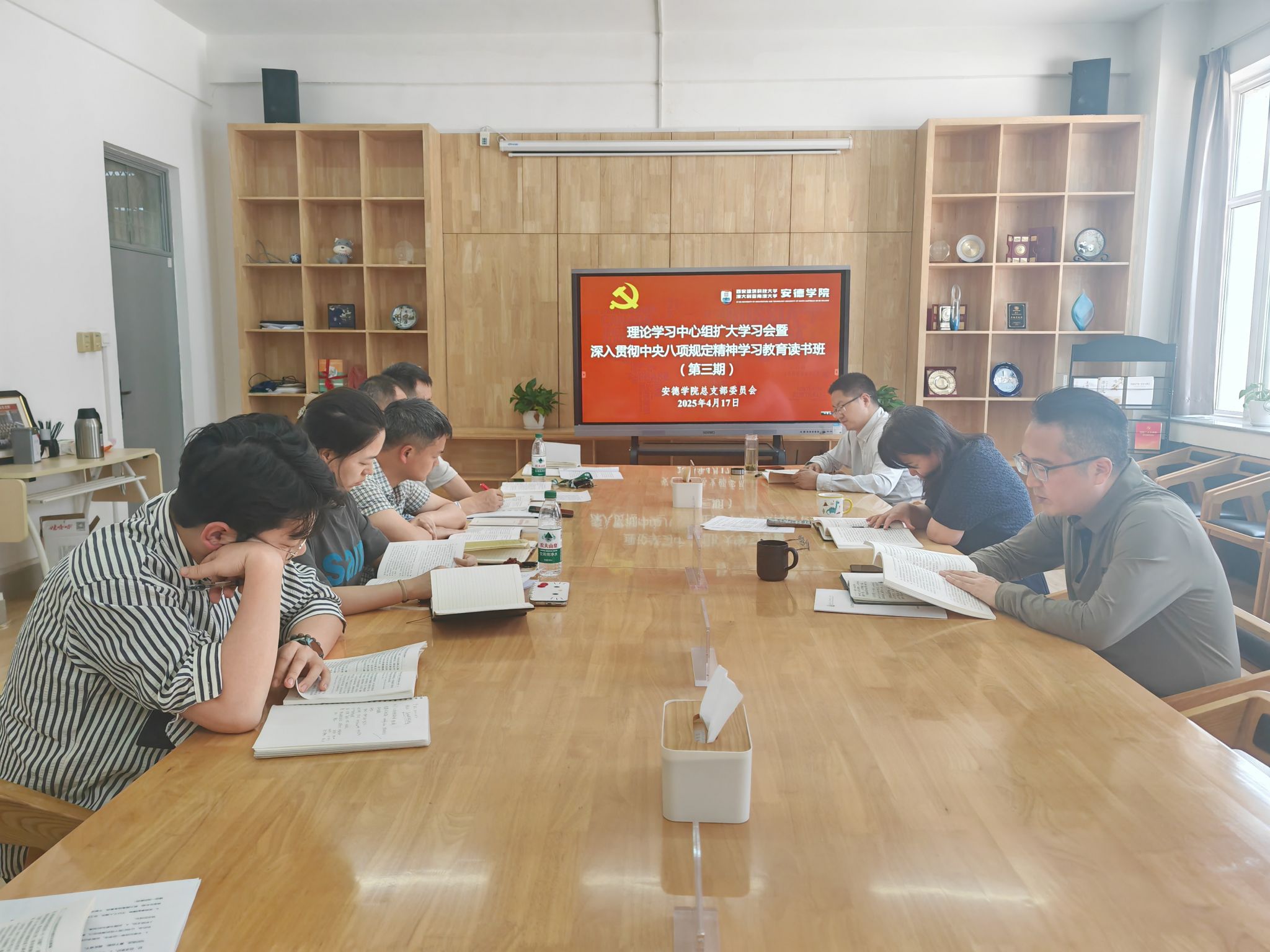 4月17日,快猫短视频 在学院212会议室召开理论学习中心组扩大学习会暨深入贯彻中央八项规定精神学习教育第三期读书班。学院党总支委员、纪检委员、各党支部书记、职工代表参加会议,会议由党总支书记罗明忠主持。