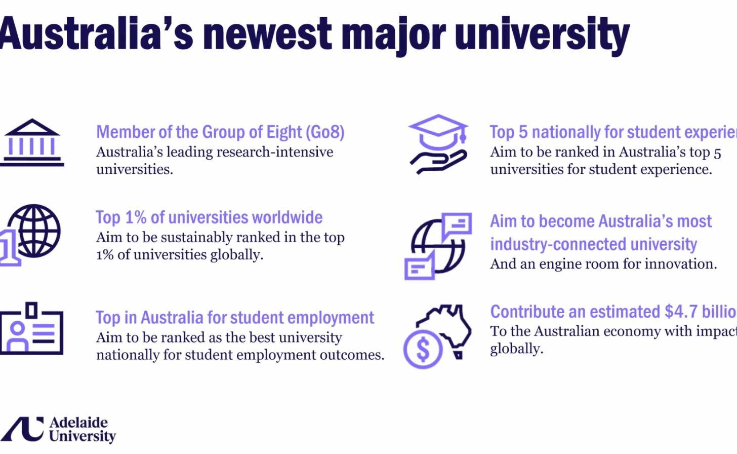 Ethan Zhang对新成立的Adelaide University进行介绍,并对南澳大学的环境设施、办学优势、就业机会以及4+1.5/4+2项目的申请要求和办理流程等方面进行详细说明。