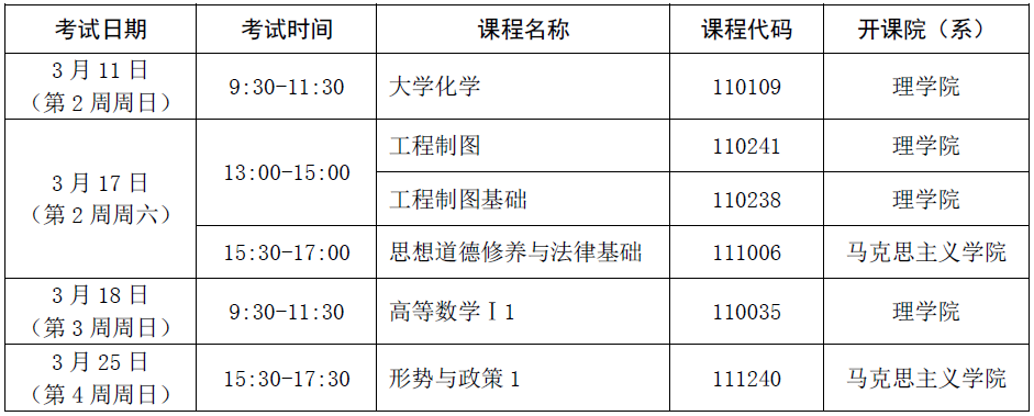 学校2017-2018学年第二学期开学初统考课程补考安排如下,其它课程补考将由开课学院在下学期开学时确定补考时间。