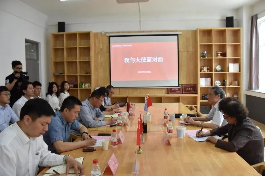 负责人参加了会见。随后,周文重大使前往我校校史馆、建筑广场进行参观。