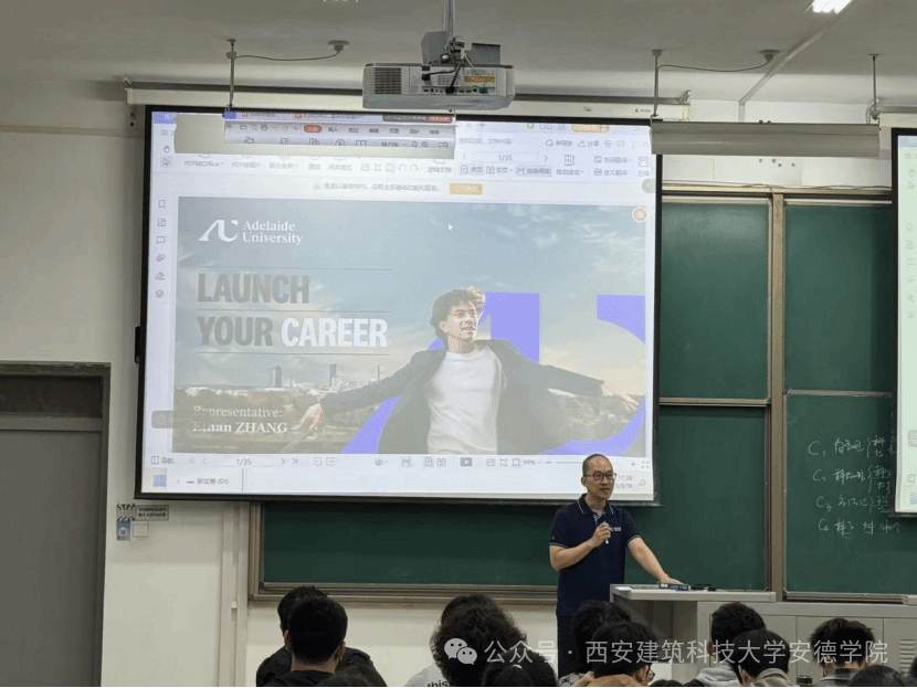 首先,阿德莱德大学国际业务发展专员Ethan 老师向同学们详细介绍了新阿德莱德大学的主要情况,包括学校特色,专业优势,学生服务,就业前景等方面内容。同时还对需要满足的录取条件,奖学金申请,留学费用等其他问题进行讲解。