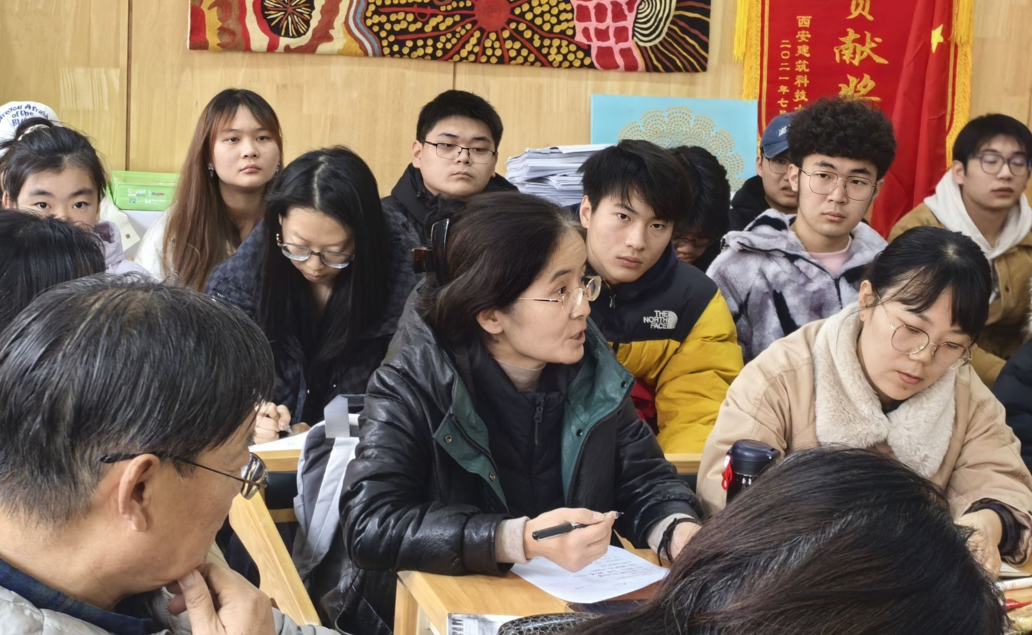 座谈会上,学生代表就学习过程中遇到的问题,如引进课程听课难度大、学业压力大、英语能力提升需求等坦诚发表意见。与会教师们对学生的疑问给予了详细解答,同时结合教学过程中存在的学生到课率、课堂听讲、学习态度等问题提出建议。多位教师指出,学生需从被动学习转为主动学习,增强课堂参与感,养成良好的学习习惯。此外,督导组专家建议通过强化考勤制度、提升课堂互动质量、要求学生做笔记等措施,进一步提高教学质量,加强学风建设。