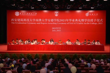 百年恰风华,世纪正青春。7月6日,快猫短视频 首届毕业生毕业典礼暨学位授予仪式在草堂校区紫阁大礼堂和澳大利亚南澳大学两个会场线下线上同时举行。西安建大党委书记朱晓渭、校长王树声,南澳大学国际副校长加布里埃尔·罗兰、科技工程与数学学部高级部长朱莉·米尔斯,澳大利亚教育管理集团西安区域部长徐兴业出席,西安建大党办校办、宣传部、教务处、研究生院、学生处、校团委、财务处、国际处、草堂校区管委会办公室、土木学...