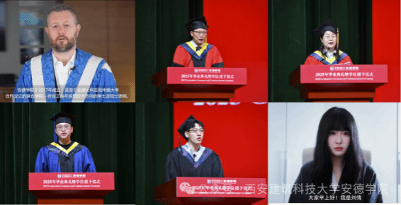 2025年毕业典礼暨学位授予仪式在草堂校区紫阁大礼堂举行。学院领导班子、南澳大学代理副校长(国际)Darren Turner,本科生院、国际交流合作处、草堂校区管委会办公室等职能部门负责人,土木工程学院、建筑设备科学与工程学院、管理学院、信息与控制工程学院等相关院系教师代表、毕业班辅导员以及2025届全体毕业生出席典礼。典礼仪式由学院党总支副书记、副院长张紫薇主持。