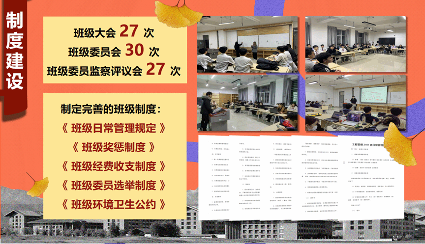 在班级管理方面,工程管理 2101 班严格落实 “两会一监察” 制度,这一制度犹如班级稳定发展的基石。班级委员专注于班级各项具体事务的执行与推进,确保班级日常工作的高效开展。