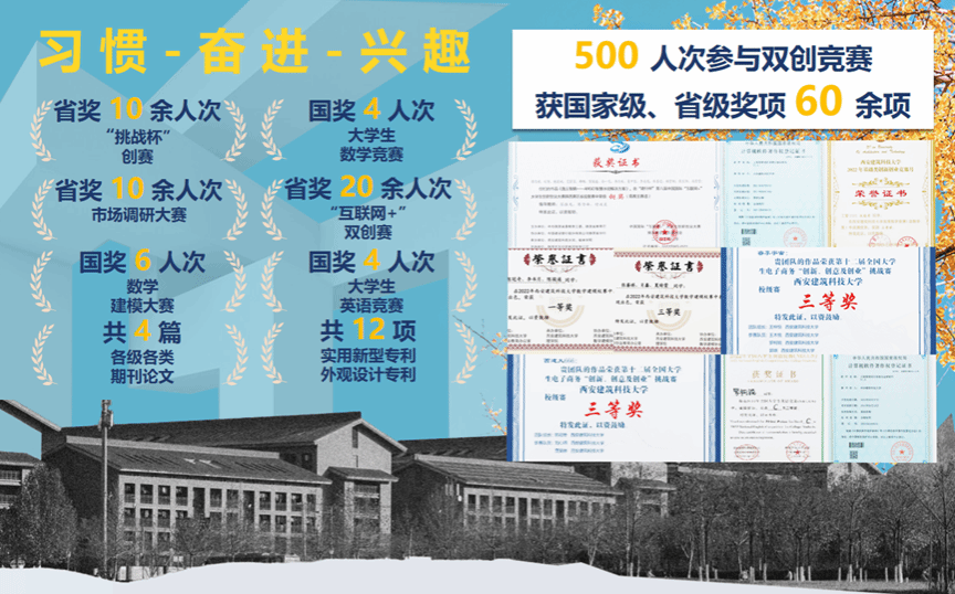 班级坚持在行动中提升素养,50%以上同学服务于各类学生组织,曾在校学生会、校团委等担任主要负责人的有9人;力求“全面发展”,6人签约视觉中国等平台,作品被CCTV采用。在乡村实践中触摸民生百态,在广厦楼宇融合学科视角。班级成员积极投身实践,全体成员参与“三下乡”暑期社会实践,赴全国多个地区,向国家级新闻平台投稿50余篇,所在团队获得“陕西省优秀团队”称号,10余人获个人奖励。班级成员累计志愿时长超2000小时,中国青年志愿者注册率100%,10余人获“优秀大学生志愿者”,12人获疫情志愿服务证书,累计参加各类志愿服务活动50余项。