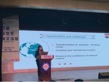 在高校代表报告环节,快猫短视频 四名学生依次上台发表演讲,从国际学生领袖青年领导力、国际视野与相关经历、国际视野与国际挑战、机遇与挑战四个角度围绕主题进行了阐述与分享。