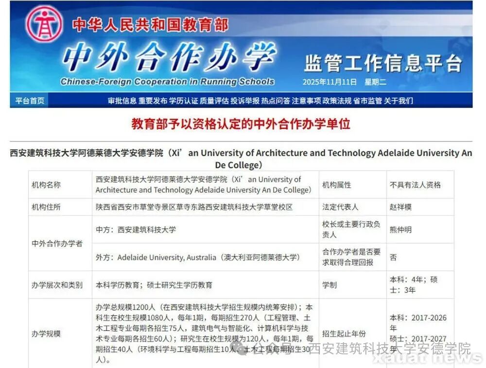 ”。该变更已在教育部中外合作办学监管工作信息平台完成更新。
