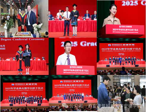 2025年毕业典礼暨学位授予仪式在草堂校区紫阁大礼堂举行。学院领导班子、南澳大学代理副校长(国际)Darren Turner,本科生院、国际交流合作处、草堂校区管委会办公室等职能部门负责人,土木工程学院、建筑设备科学与工程学院、管理学院、信息与控制工程学院等相关院系教师代表、毕业班辅导员以及2025届全体毕业生出席典礼。典礼仪式由学院党总支副书记、副院长张紫薇主持。